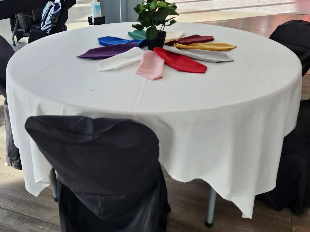 Add that extra touch with linens for your event. Give us a call with your color preference.